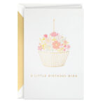 Birthday greeting card shares the love and features a pretty cupcake made of pastel flowers with a candle and shiny gold foil accents.
