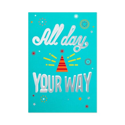 - Party hat card message: All Day Your Way; Wishing you all your favorite things, all birthday long.
