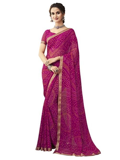 Bandhani Printed & Lace Chiffon Saree with Blouse Rani Pink1
