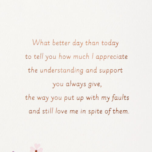 What better day than today to tell you how much I appreciate the understanding and support you always give, the way you put up with my faults and still love me in spite of them. You bring so much joy to my life just by being the beautiful, caring person you are. I’m a very lucky man to be your husband. Happy Anniversary