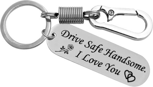 Be the first to review “Black Laser Engraved Drive Safe Keychain Gifts for Boyfriend Husband Valentine Friend Ship Day Anniversary Wedding Gifts Birthday car Key Chain for Loved one, Silver, HANDSOME”