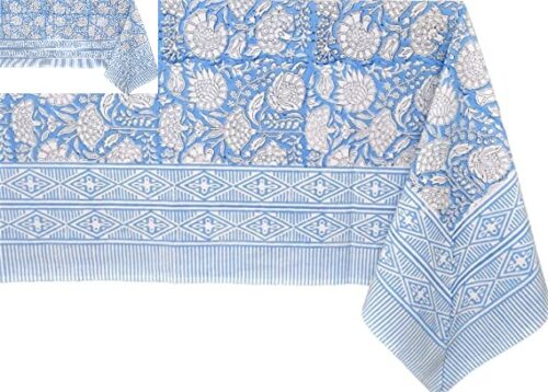 Blue Square Handblock Print 100% Cotton Table Cover for Kitchen Dining