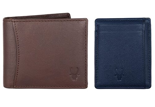 Brown Leather Men’s Wallet and Blue Safiano Card Case (WH1173)