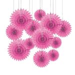 Candy Pink Hanging Tissue Paper Fans – 12 Pc.