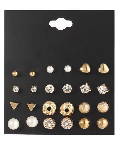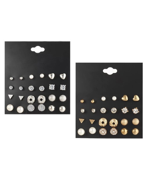 Set of 24 Crystal-Studded Stud Earrings