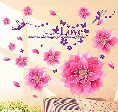 Dreamy Pink Flowers Blowing’ Wall Sticker (PVC Vinyl, 50 cm x 70 cm, Multicolour)