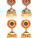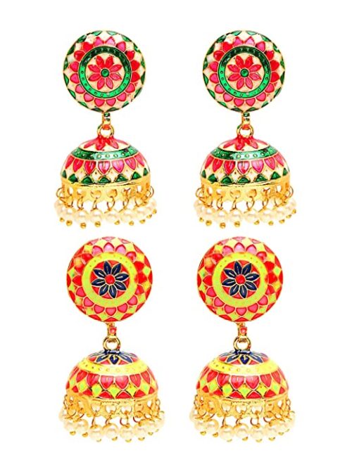 Earrings for Women and Girls | Traditional Multicolor Meenakari Jhumka | Gold Plated Earring Set | Dome Shaped Jhumki Earrings Combo | Accessories Jewellery for Women