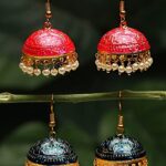 Earrings for Women and Girls Traditional Multicolor Meenakari Jhumka | Gold Plated Set Earring | Dome Shaped Jhumka Earring Combo
