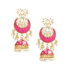 Be the first to review “Ethnic Gold Plated Traditional Pink Meenakari Studded Stones Lotus Design Chandbali Jhumka Earrings for Women and Girls”