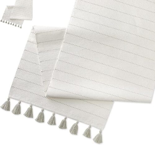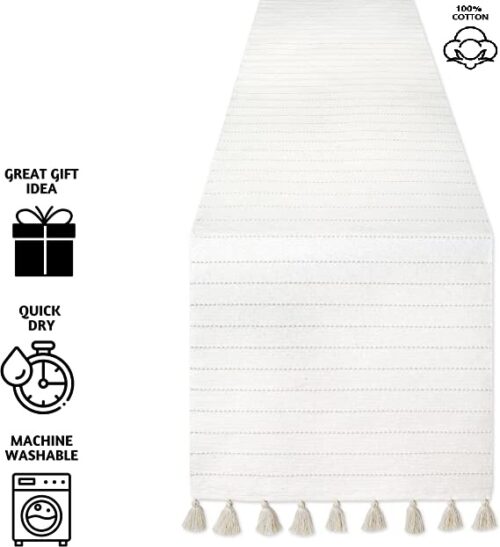 Farmhouse Décor Style 100% Cotton Dining Room Table Runner with Tassels for Kitchen Oatmeal