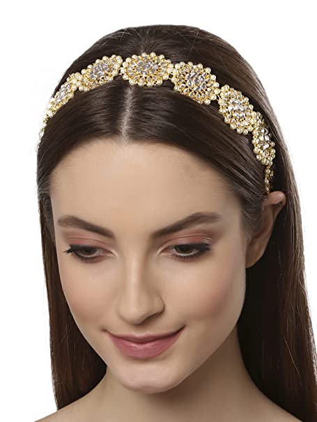 Floral Shape Kundan Studded Metal Hairband for Women, Pack of 1 – Gold-120g