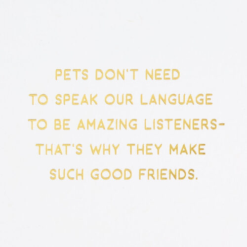 Sympathy greeting card for loss of pet features a pawprint and hearts design with foil accents and embossed details on a navy blue background.