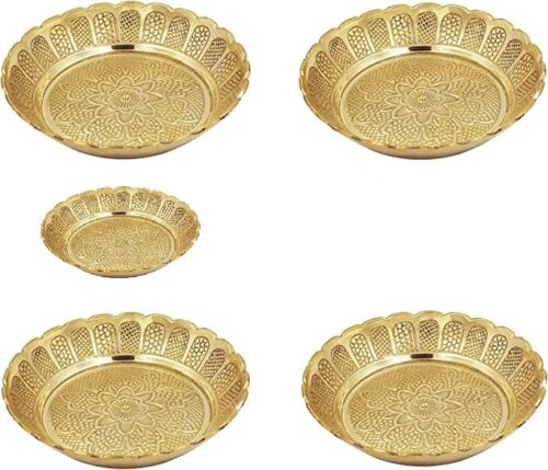 Gifting Pooja Plate (Large 11 cm, Pack of 5, Solid Brass)