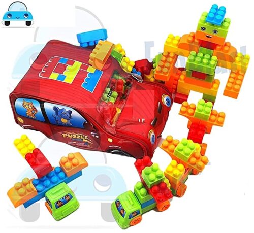 Girl’s, Boy’s Best Bag for Kids Packing Building Blocks with Wheel Toy (Multicolor) – 100 Pieces Including Wheels
