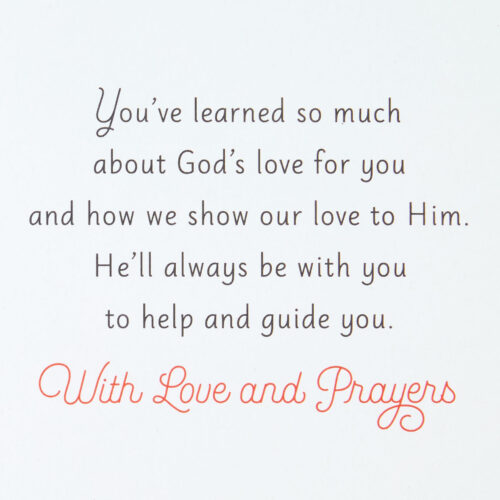 Inside Message: You’ve learned so much about God’s love for you and how we show our love to Him. He’ll always be with you to help and guide you. With love and prayers