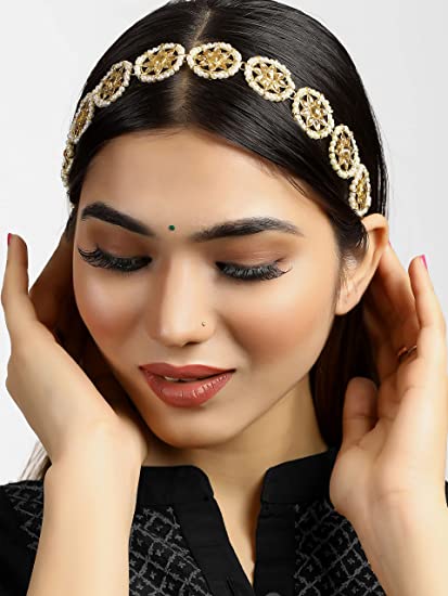 Gold-Plated Kundan-Studded Handcrafted Metal Hairband for Women, Pack of 1 – Gold