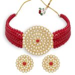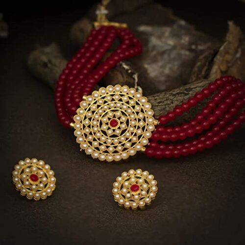 Be the first to review “Gold Plated Pearl Choker Necklace Set for Women – Red”