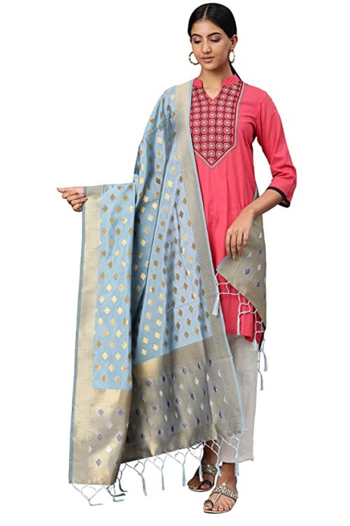 Grey & Gold-Toned Woven Design Dupatta