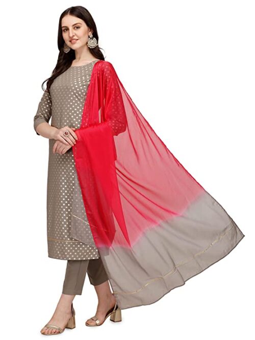 Grey Poly Crepe Straight Kurta with Pant and Dupatta-MEDIUM