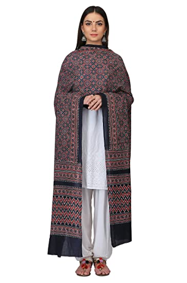 Handloom Hand Block Printed Cotton Ajrakh for Women Black