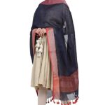 Handloom Hand Woven Linen for Women with Pom Pom Edgings Navy BLUE