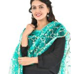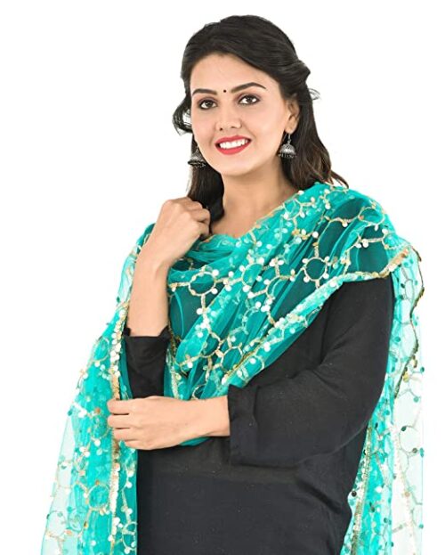Heavy Embellished Mirror Net for Womens & Girls Rama Green