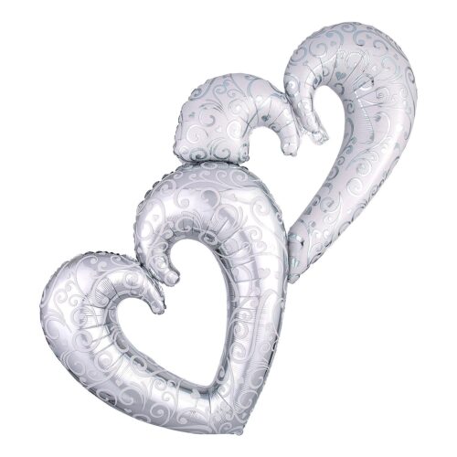 This large silver balloon is a perfect party decoration for a bridal shower, wedding reception or Valentine’s Day party.
