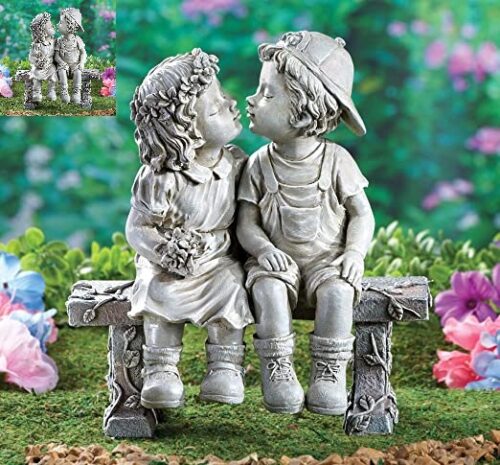 Kissing Couple, First Kiss, Puppy Love, Garden Sculpture
