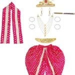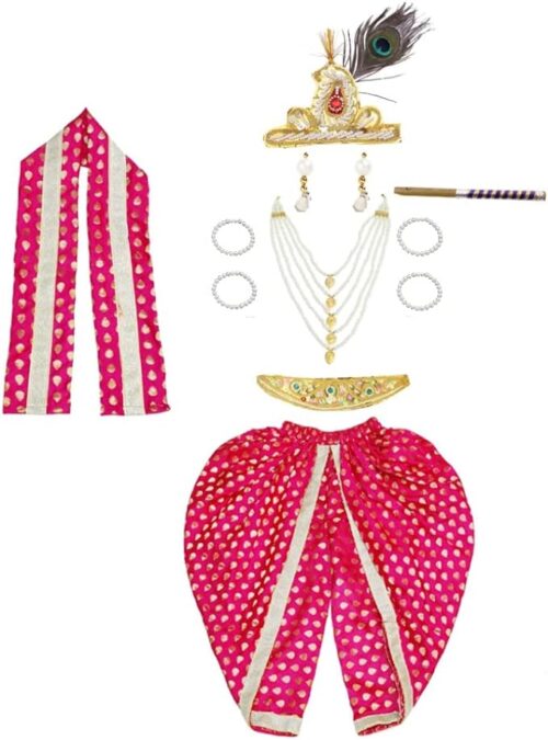 Krishna Dress for Baby Boy Kids Set of 10 Little Kanha Janmasthmi Costume for Boys Kids-Size-2 Years-3 Years- Pink
