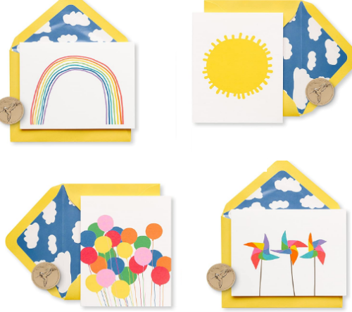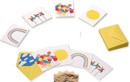 - Cards feature bright and colorful designs.