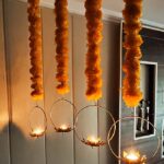 Lotus with Marigold Flowers Hanging tea light Holder for / Front Door / Entryway / Terrace / Balcony Decoration lotus Shape Hanging Tealight Holder Diyas for Decoration Diwali Tealight Holder, Diwali Decorations, Diwali Decor, Diwali Gifts ( Golden Set of 04 )