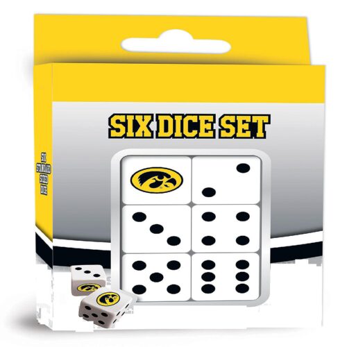 Set includes six 19mm dice featuring of logo and colors on each die.