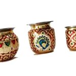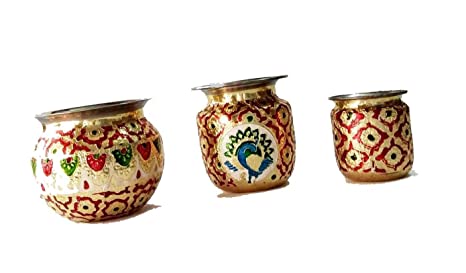 Meenakari Pooja Purpose Steel Kalash Lota Pot, Set of 3 (Multicolor)-500g