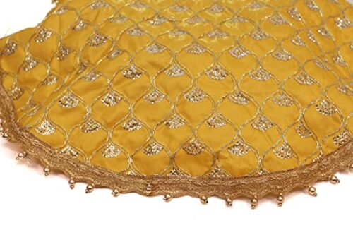 Moti Border Satin Silk Worked Thali-Cover/ Thaal-Posh/Pooja Thali Cloth (18X18 Yellow)