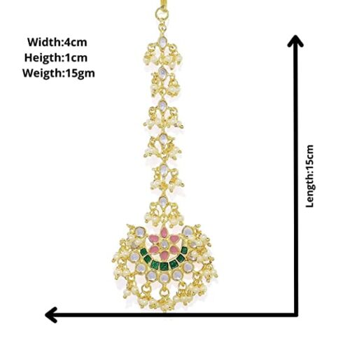 Be the first to review “Multicolor Color Brass Material Enamel and Pearls Maang Tika for Women-80g”