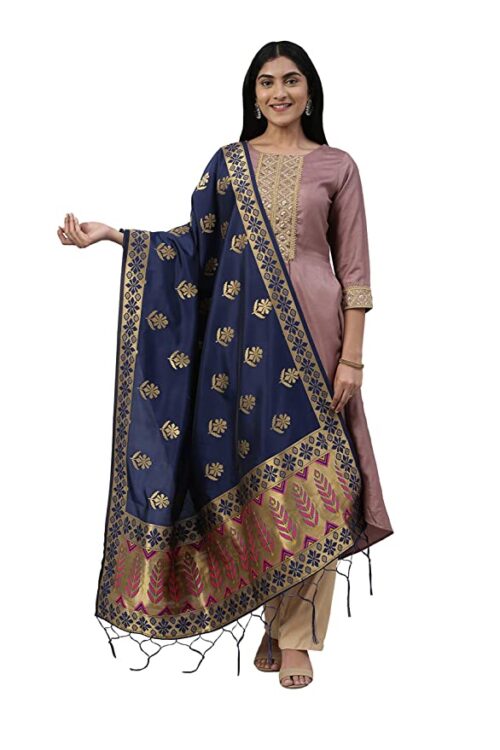 Be the first to review “Navy Blue & Gold-Coloured Woven Design Dupatta”