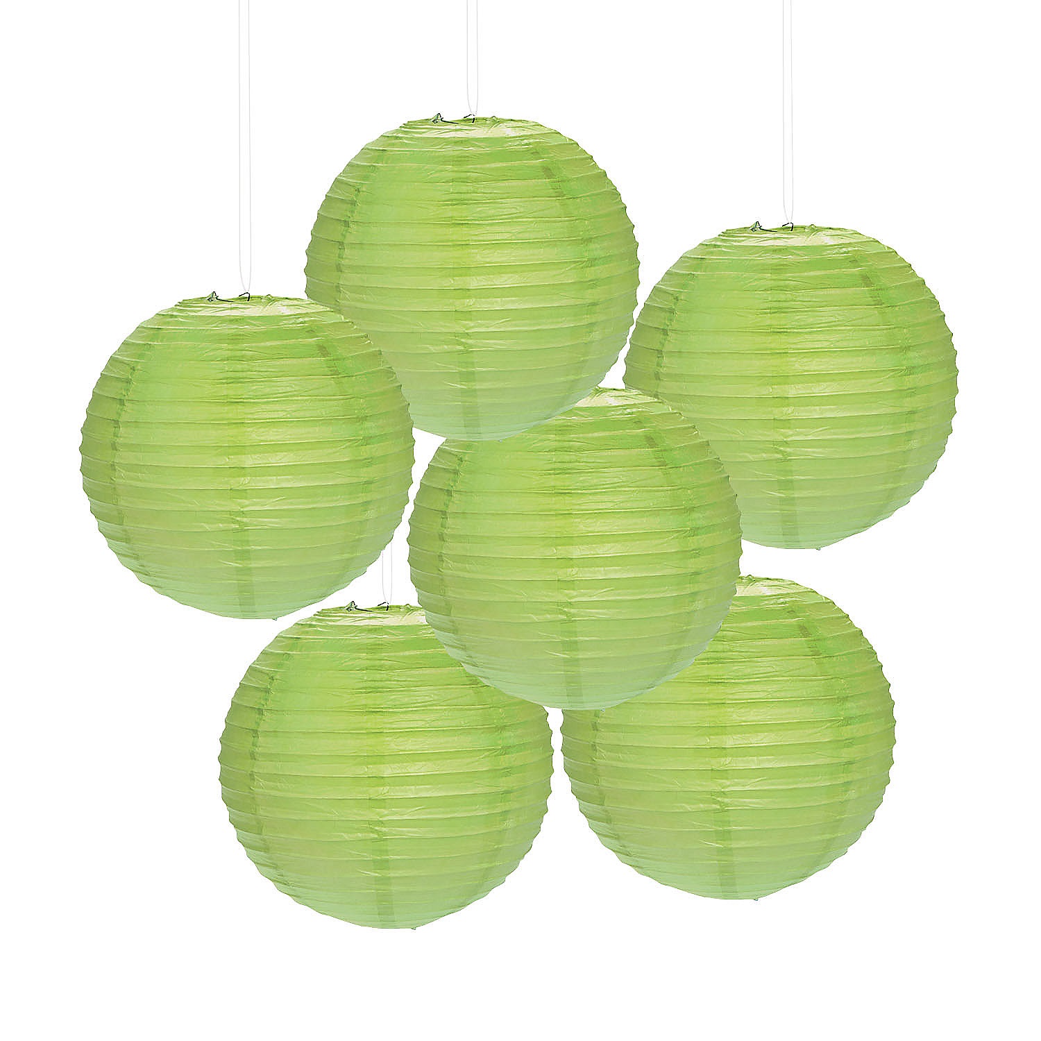 Size: 12”Shape: Round.Quantity: 6Material: Paper.Includes wire hangers.