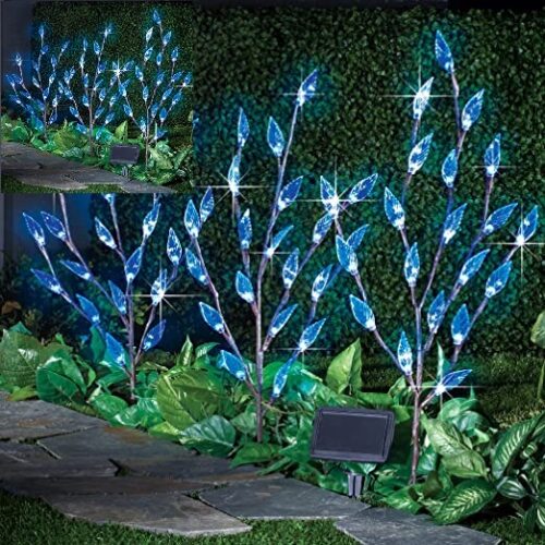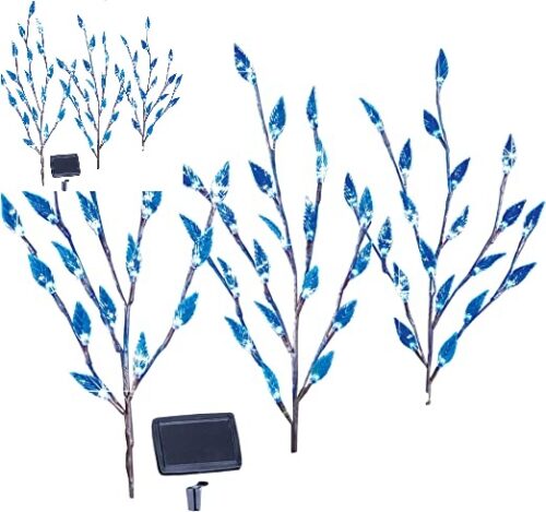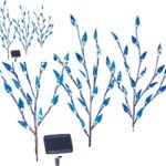 Outdoor Decorative Blue Solar Bright Leaf Branch Lights with Adjustable Branches 3PCS 60 LED