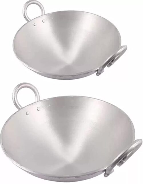 Pack of 2 Piece Aluminium Kadhai Kadai with Handle for Kitchen deep Frying pan Kadai (Size:2.5 litres and 4 litres)