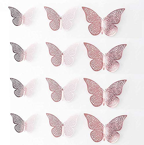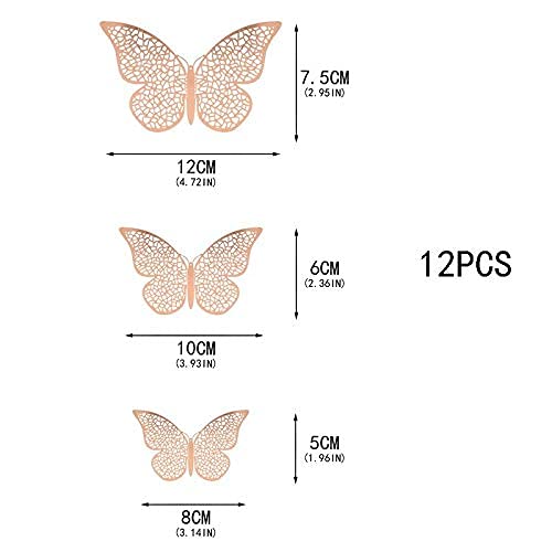 Paper Metallic Finish Home Decor 3D Butterfly with Sticking Pads (Rose Gold) -Set of 12 Pcs