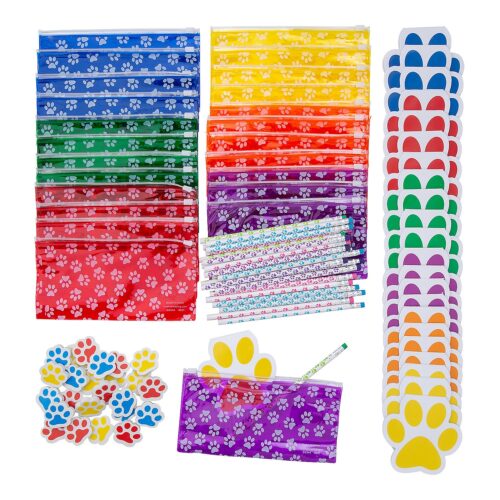 24 Plastic Paw Print Pencil Cases (8″ x 4″ with slide closure.)• 24 Wooden Paw Print Pencils (7 1/2″)•