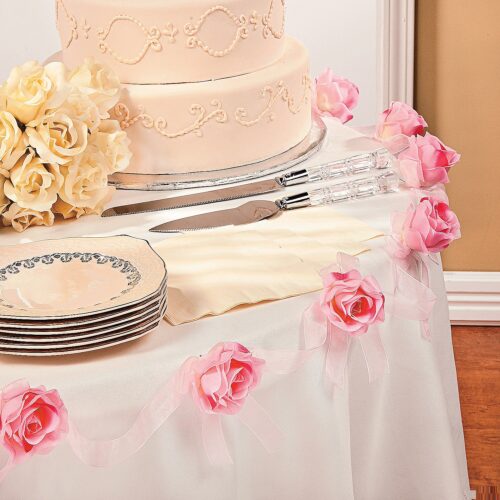 Includes eight 3 1/2″ blooms on a sheer ribbon. Polyester. 6 ft.