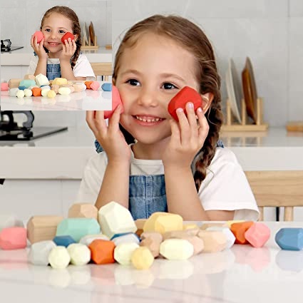- Unlike the traditional building blocks, every block is a polyhedron, each different in size, color and weight, making stacking game more challenging so that kids can complete the building process in a whole new way