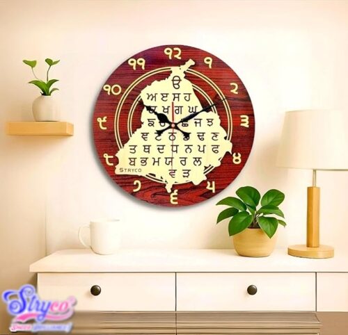Punjab MAP Wooden Clock | Home and Wall Decor Item | 12×12 INCHES