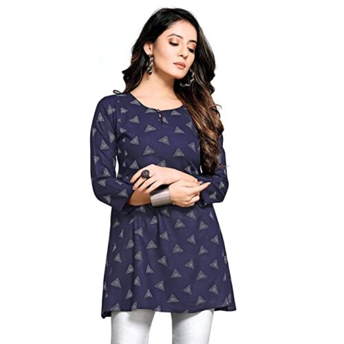 Be the first to review “Rayon Fabric Printed Round Neck Short Kurtis for Women Top Dresses Kurti for Ladies & Girls Kurtis-Navy Blue-XS-SIZE”