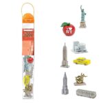 American ruler and contains figurines of 8 iconic landmarks and features of New York City that range from 1.25 to 3.75 inches tall.