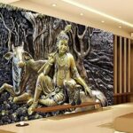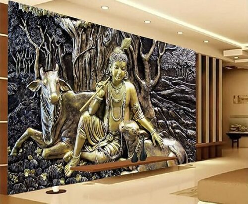 Self Adhesive Wallpaper Wall Sticker for Home Decor Office Living Room Bedroom Hall Kids Room Play Room 3D Design hd Multicolor Shri Krishna ji Scenery_37 (48 inch x 30 inch)- 1Roll