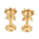 Set of 2 Pure Brass Diya for Puja Temaple Decoration, Lotus Shape Pillar Diya Stand Oil Lamp for Home Mandir Pooja Articles Decor Gifts (Size 3.8 Inch, 2Pcs)–210g