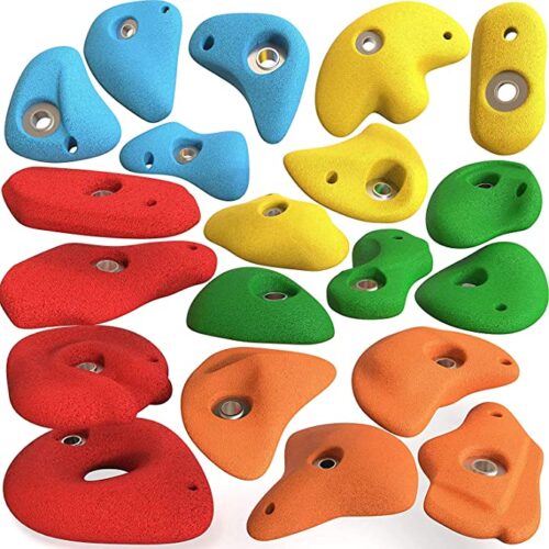 This provides you potential maneuvers that you would encounter on real rock. These holds can be used in for kids bedroom climbing wall, climbing wall holds for kids outdoor, playset climbing wall, treehouse attachments in the backyard and adult rock climbing or play gyms.