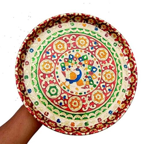 Steel Handmade Meenakari Pooja Thali (Standard Size, 11×11 Inches)–300g